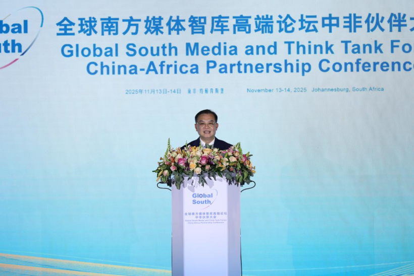 11月13日,“全球南方”媒体智库高端论坛中非伙伴大会开幕式在南非约翰内斯堡举办。湖南省商务厅厅长沈裕谋在发言中表示,湖南期待与全球南方智库同仁携手,以智力赋能合作,以合作推动发展,共同书写湖南与全球南方国家开放共赢的新篇章。