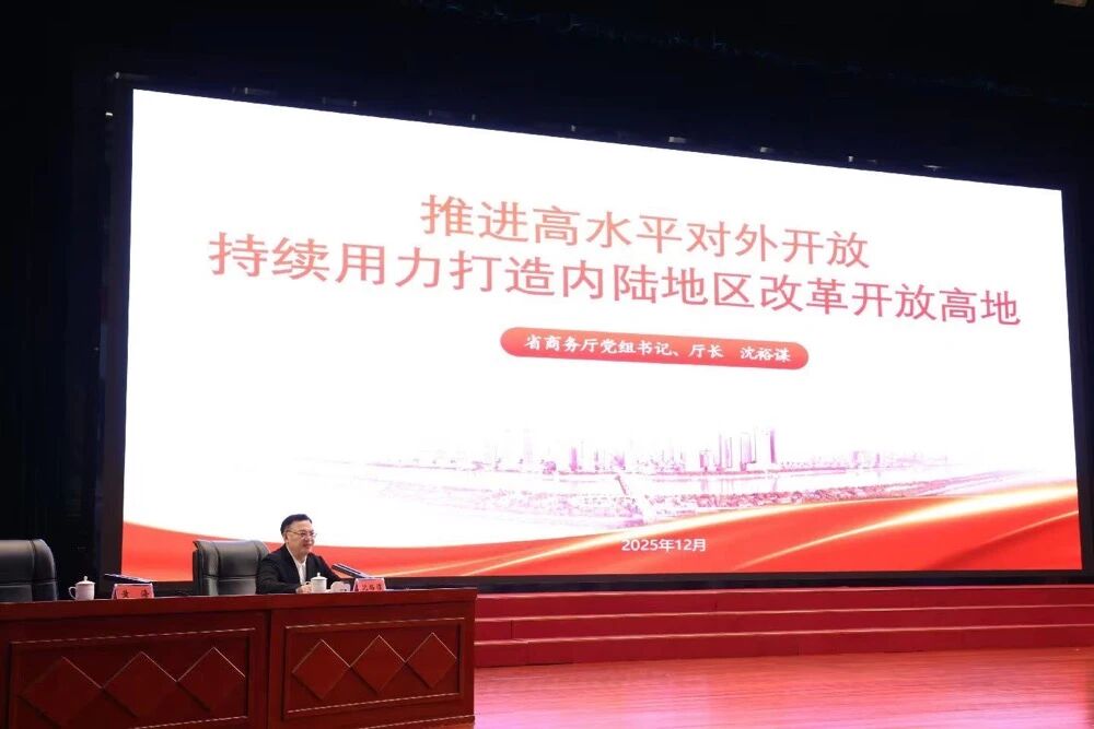 沈裕谋表示,打造内陆地区改革开放高地,“内陆地区”是区域定位,“改革开放”是主要任务,“高地”是目标要求。十五五时期,全省商务系统将实施高位势的开放战略,培育高开放度的经济体系,打造高能级的开放平台,畅通高质效的内外循环,构建高协同度的开放生态,细处求精益、宽处谋布局、高处争独到,为加快实现“三高四新”美好蓝图而勇毅前行。
