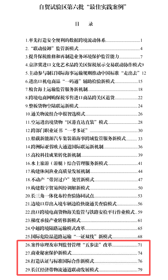 8月29日,商务部印发推广自贸试验区第六批“最佳实践案例”,供各地学习借鉴。湖南自贸试验区“商业秘密保护新模式”“打造认证与标准国际合作新模式”“长江经济带物流通道联动发展模式”“案件审理及审判监督管理‘五步法’改革”等4项案例入选,数量居全国首位。