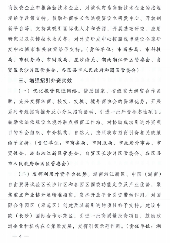 长沙市人民政府办公室关于印发《长沙市进一步扩大利用外资促进经济高质量发展的若干措施》的通知