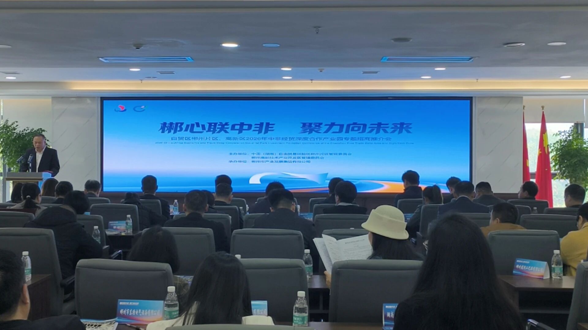3月26日,郴州自贸片区、高新区2026年中非经贸深度合作产业园专题招商推介会召开。会议以“郴心联中非,聚力向未来”为主题,旨在进一步深化湘非经贸合作,共享发展新机遇。郴州自贸片区、高新区管委会主任曹志宏出席并致辞,党工委副书记廖建荣主持活动,党工委委员、管委会副主任曹为群参加。