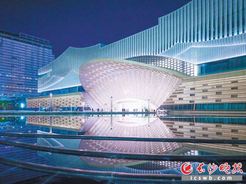 夜幕之下,长沙国际会议中心灯火璀璨、流光溢彩。远远望去,建筑幕墙和金属屋面似重峦叠嶂,颇为壮观。这个中部地区面积最大的会议中心,因状如一目,市民亲切称之为“长沙之眼”。