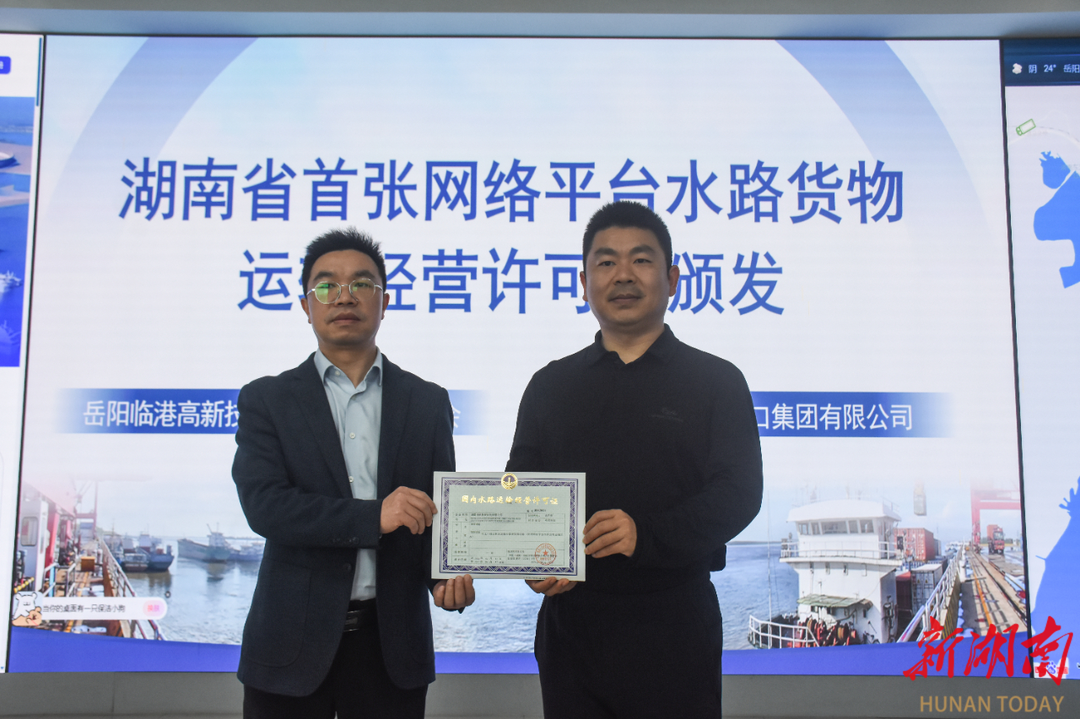 4月17日,湖南省首张网络平台水路货物运输经营许可证在岳阳临港高新区正式颁发。今后,货主可通过线上平台发布货源、选择船舶、追踪货物动态,体验类似电商购物的可视化管理;船东也能告别“找货难、等货久”的困扰,实时接收订单。