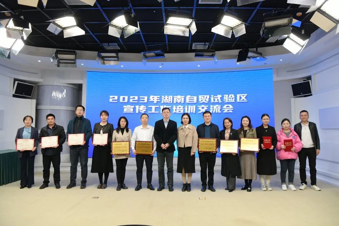 会议还通报了2022年度自贸宣传工作优秀单位、个人名单。长沙片区管委会、岳阳片区管委会等5家单位荣获2022 年度自贸宣传工作优秀单位,黄超、黎琼、刘昌义等十人荣获2022 年度自贸宣传工作优秀个人。