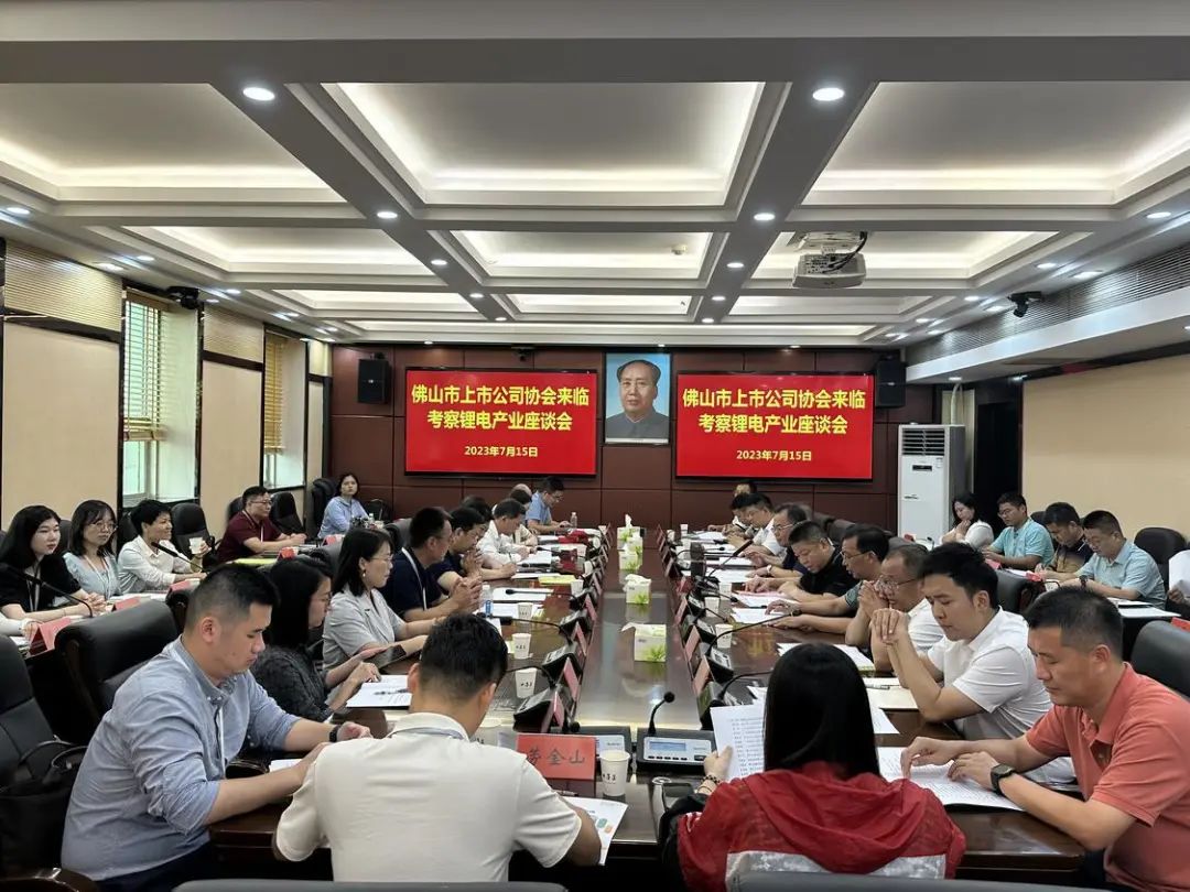 ▲召开佛山上市公司协会考察团考察临武县锂电产业座谈会。