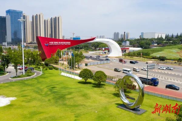 位于长沙市人民路与东五路交汇处的中国(湖南)自由贸易试验区拱门式标识性建筑。 湖南日报全媒体记者 傅聪 摄