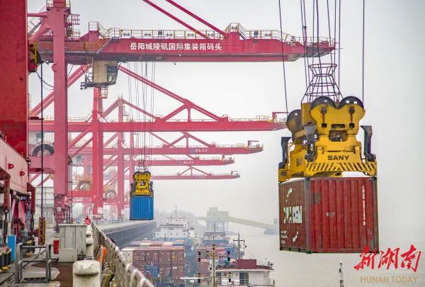 繁忙的岳阳城陵矶港国际集装箱码头。湖南日报全媒体记者 徐典波 摄