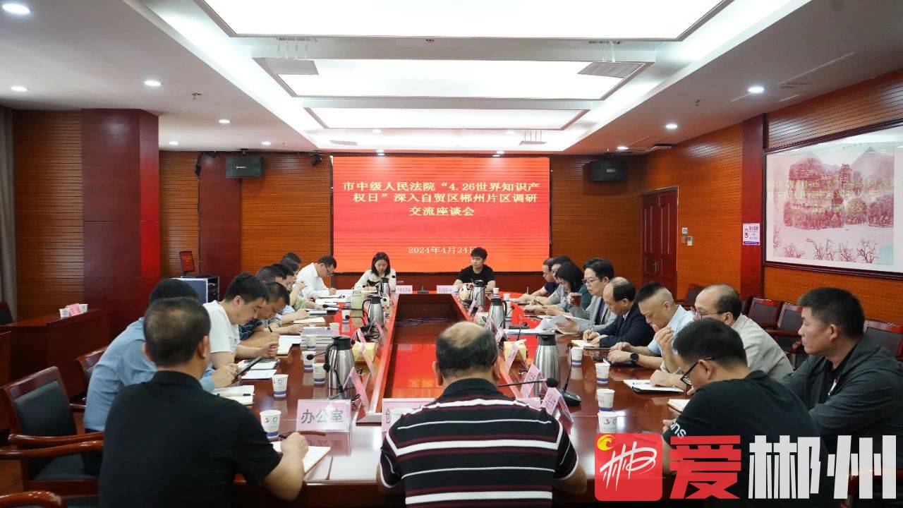 为进一步集聚各方力量,切实加强企业知识产权源头保护,为郴州自贸片区、高新区的高质量发展提供更好的司法服务,4月24日,在第24个世界知识产权日来临之际,郴州市中级人民法院联合市工商联、郴州自贸片区、高新区管委会开展调研并召开座谈会。市中级人民法院原党组副书记、副院长、二级高级法官曹文杰,郴州自贸片区、高新区原党工委委员、原纪工委书记黄志中,市工商联副主席刘根,苏仙区法院党组书记、院长谢末钢参加调研。全国人大代表吴杰俊、省人大代表谢雯、市政协委员曹勇应邀出席活动。郴州中院相关部门负责人、苏仙法院分管院领导及部分企业家代表参与座谈。