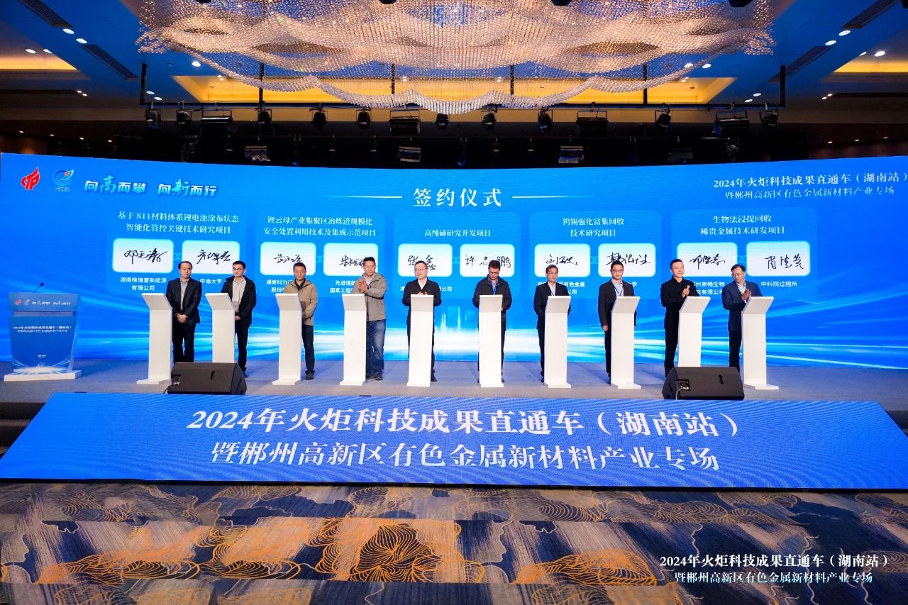 10月29日,2024年火炬科技成果直通车(湖南站)暨郴州高新区有色金属新材料产业专场在湖南郴州举行,现场签约一批项目。