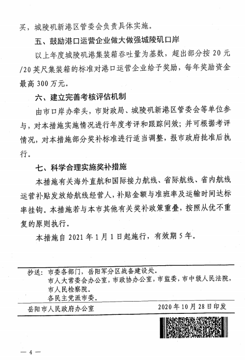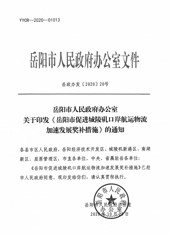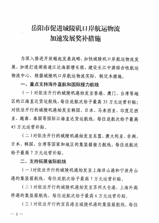 《岳阳市促进城陵矶口岸航运物流加速发展奖补措施》