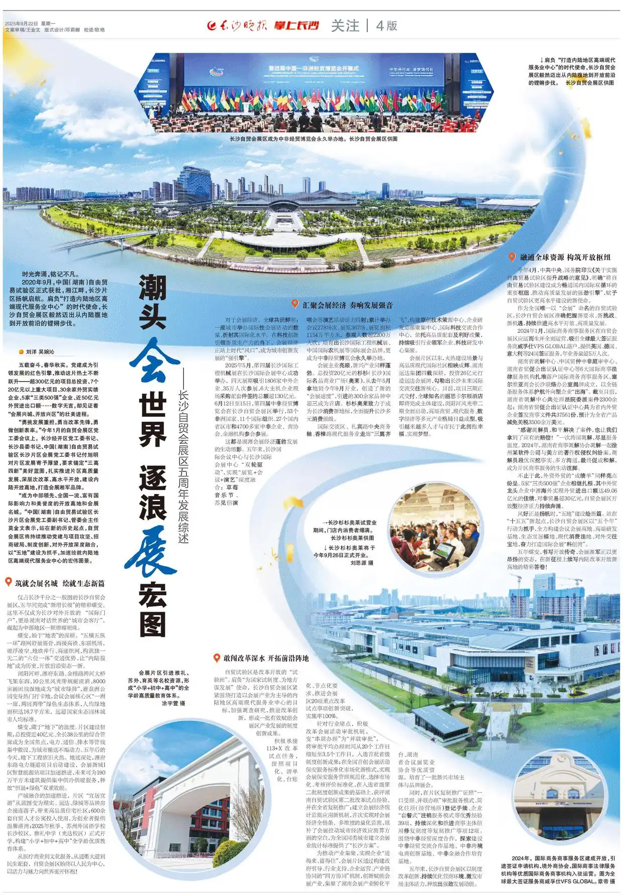 风好正是扬帆时,“五地”建设绘新篇。站在“十五五”新起点,长沙自贸会展区以“五个年”行动为抓手,全力构建会议会展高地、高端研发基地、生态宜居福地、现代消费洼地、对外交往宝地,奋力打造国际会展“科创湾”。